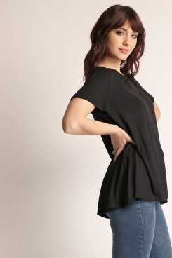 MÁS INFORMACION Realizado en Modal . Prenda de formato evasé, que aporta excelente caída y movimiento, al mismo tiempo que se adapta a diversas siluetas. Largo a la cadera. Escote redondo aplicado. Manga corta.