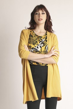 MÁS INFORMACION Realizado en Lanilla labrada. Formato cuadrado. Manga 3/4. Ruedo recto, con tajos laterales.Largo debajo de la cadera.