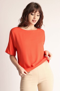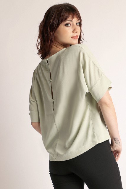 MÁS INFORMACION Realizado en Creppe . Formato cuadrado. Manga corta con puño sin frunce. Escote redondo con collareta interna. Espalda con lágrima profunda y tres botones de pasta al tono.