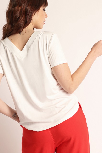 MÁS INFORMACION Realizado en Modal con Lycra . Escote en V en delantero y espalda. Manga corta. Prenda con excelente calce. Su textura super suave le aporta una caída perfecta para generar un look descontracturado y súper cómodo.