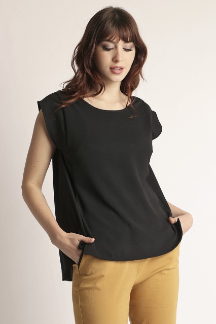 MÁS INFORMACION Realizado en Creppe . Formato evasé. Ruedo irregular mas largo en espalda. Tajos en delantero de recorte lateral. Lagrima en espalda con botón metálico en baño plateado. Manga japonesa generada con recortes. Hermosa opción para estar fresca y arreglada.