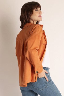MÁS INFORMACION Realizado en Lino . Prenda de formato cuadrado. Con bolsillos plaqué estilo safari en delantero. Botones de pasta marmolados en cartera de acceso. Su materialidad le aporta frescura y comfort. Una prenda de corte sutilmente Over size para combinar en infinidad de looks.