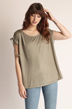 MÁS INFORMACION Realizado en Modal con Lycra . Formato cuadrado. Largo a la cadera. Ruedo recto. Detalle en hombro con tiras de igual tela que generan un efecto drapeado ideal para quienes buscan general una sutil volumetría en este sector armonizando la visual general de la silueta.