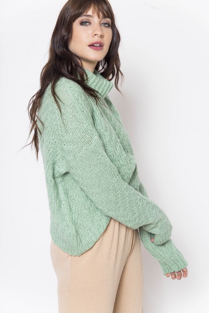 MÁS INFORMACION Realizado en Lana con acrilico . Prenda de formato Oversize. Con cuello estilo polerón volcado. Largo a la cadera. Tejido suave, con diseño calado, liviano y confortable.