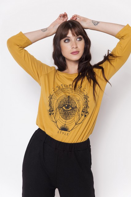 MÁS INFORMACION Realizado en Modal con Lycra gamuzado que aporta suave mano y excelente calce. Formato clásico sutilmente evasé. Manga 3/4. Cuello redondo. Ruedo irregular, trasero más largo y curvo. Estampa a contra tono en delantero. Ideal para looks con onda y super cómodos.