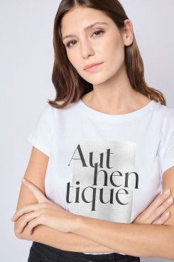 MÁS INFORMACION Realizado en Jersey liso, en una hermosa paleta de color. Escote redondo, manga corta, largo a la cadera. Calce clásico que acompañará las líneas del cuerpo. Estampa en delantero tipográfica con fondo metálico, de alta tendencia en esta temporada, no te la podes perder!