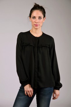 MÁS INFORMACION Realizado en Creppe liso. Escote redondo, cartera escondida, manga larga. Detalle de voladito en canesú que le da un aire delicado y super femenino. Largo a la cadera. Variada y hermosa paleta de color.