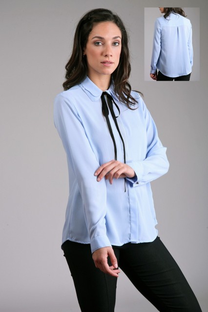 MÁS INFORMACION Realizado en Creppe liso. Detalle de cuello doble y lazo contratono que le dan un estilo elegante y super femenino. Manga larga, botones visibles del color del lazo. Largo a la cadera. Un básico con estilo que no puede faltar en tu guardarropas.