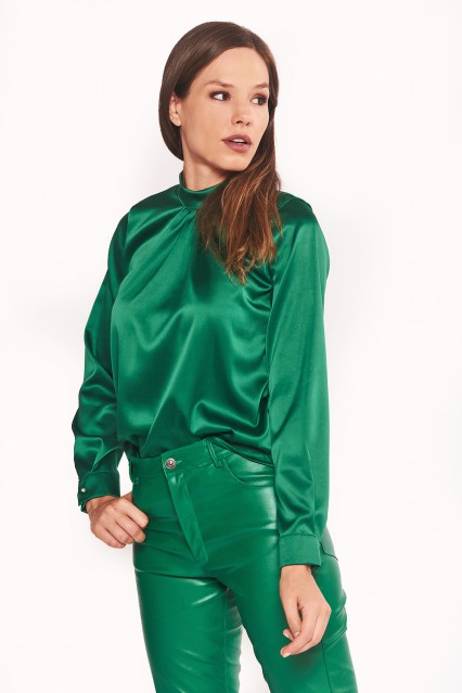 MÁS INFORMACION Realizado en Saten con lycra liso, en una hermosa paleta de colores súper saturados, de alta tendencia en esta temporada. Manga larga, cuello alto con lazo en escote espalda igual tela. Largo a la cadera. Calce clásico que acompañará con suavidad las líneas del cuerpo. Botones metálicos de pie níquel brillante en puños. Una prenda elegante y con mucho estilo que no te podes perder!