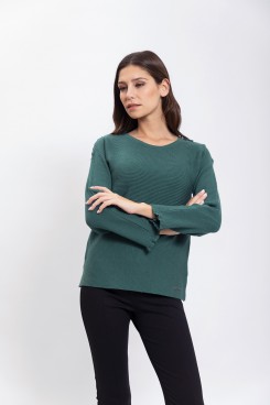 MÁS INFORMACION Realizado en Viscosa con Lycra liso con un hermoso punto horizontal que le aporta personalidad y textura a la prenda. Manga larga, escote redondo. Detalle de tiras cruzadas en hombros con ojalillos metálicos que le dan un aire súper canchero. Chapa marcaria metálica. Largo a la cadera, calce clásico. No te pierdas esta prenda versátil y distinta que le dará toda la onda a tu look!